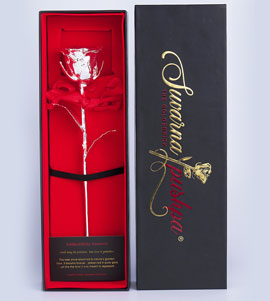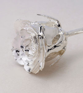 Our silver plated rose collection includes silver dipped roses and real roses plated in silver, ideal as a silver rose gift, romantic silver rose gift, or silver rose keepsake. Available with personalized silver rose for anniversary and silver rose that lasts forever options.